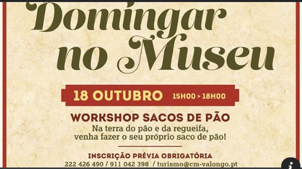 Porque Valongo é tradicionalmente conhecido como a Terra do Pão e do Biscoito e porque, anualmente, a 16 de outubro se comemora o Dia Mundial do Pão, no domingo, dia 18 de outubro, entre as 15h00 e as 18h00, estão todos convidados a juntarem-se a nós para produzirem o vosso próprio saco de pão, contando com o apoio da artesã do concelho Luz Couto.
