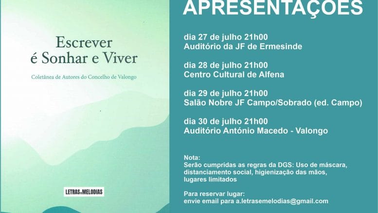 A apresentação vai acontecer em 4 momentos diferentes, para evitar o ajuntamento de muitas pessoas. As datas e locais são dia 27 de julho às 21h00 no Auditório da JF de Ermesinde; no dia 28 de julho às 21h00 no Centro Cultural de Alfena; no dia 29 de julho às 21h00 no Salão Nobre JF Campo/Sobrado (ed. Campo) e no dia 30 de julho às 21h00 no Auditório António Macedo – Valongo.