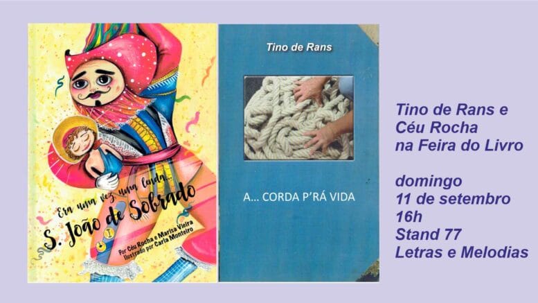 A novidade é que Vitorino Silva não vai estar sozinho, ao mesmo tempo que apresenta “A.. corda pr’a vida”, o seu último livro, o antigo candidato presidencial vai estar acompanhado pela esposa, Maria do Céu Rocha, que irá apresentar “Era uma vez uma Lenda… S. João de Sobrado”, um livro que explica aos mais novos a lenda da Bugiada e Mouriscada, vivida a 24 de junho em Sobrado, Valongo. Este livro tem a co-autoria de Marisa Vieira e ilustrações de Carla Monteiro.