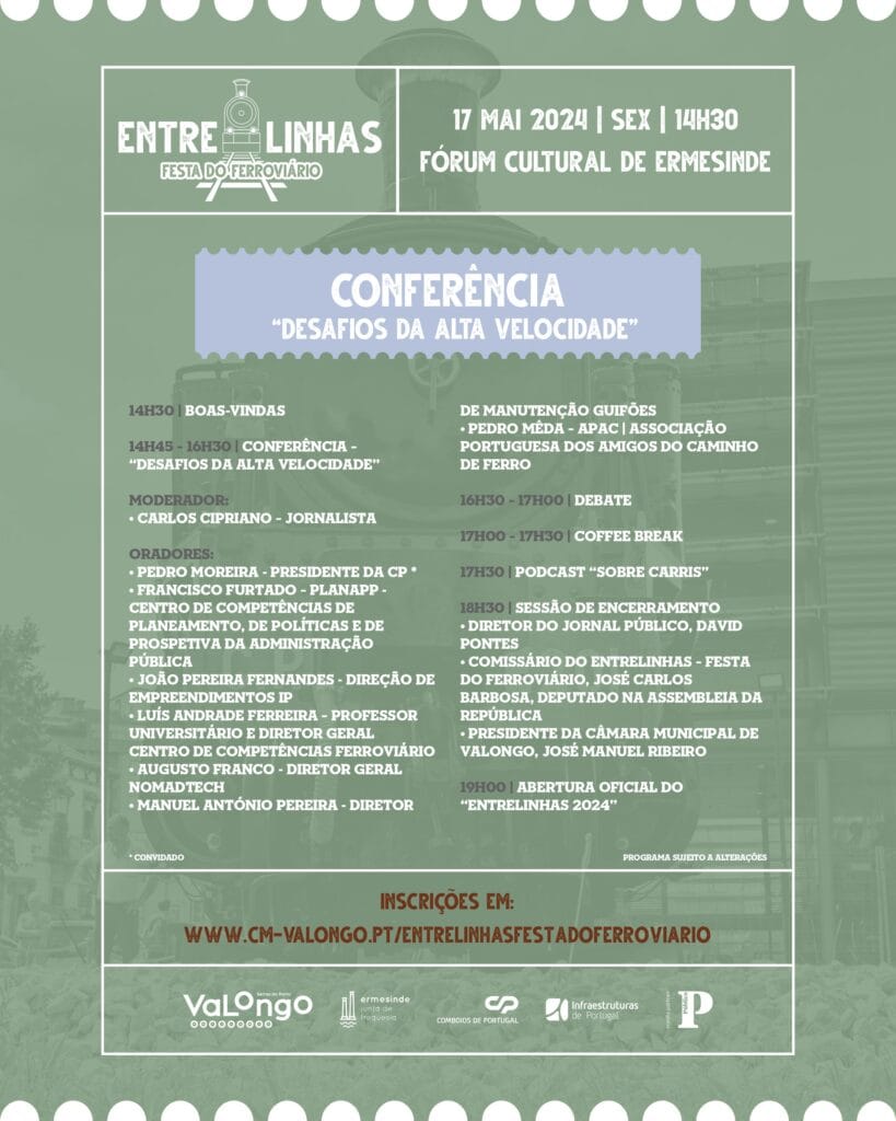 Assim, mantendo-se como comissário do evento o deputado à Assembleia da República, José Carlos Barbosa, a programação arranca esta sexta-feira, a partir das 14h30, com a conferência “Desafios da Alta Velocidade”, no Fórum Cultural de Ermesinde.