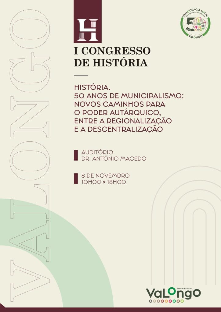 No dia 08 de novembro, o Auditório António Macedo, em Valongo, será palco do I Congresso de História promovido pela autarquia de Valongo sob o tema “História. 50 anos de Municipalismo: novos caminhos para o poder autárquico, entre a regionalização e a descentralização”.