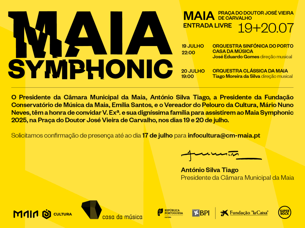 Nos dias 19 e 20 de julho, a cidade da Maia volta a ser palco do Maia Symphonic 2025, evento organizado pela Câmara Municipal e produzido pela Casa da Música, que celebra a excelência artística da comunidade concelhia.
