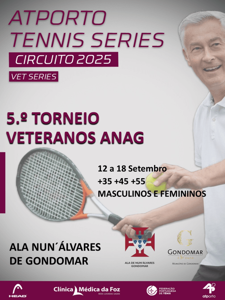 A Ala Nun’Álvares de Gondomar (ANAG) vai acolher, entre os dias 12 e 18 de setembro, a 5.ª edição do Torneio de Veteranos ANAG, uma competição já consolidada no calendário regional de ténis.