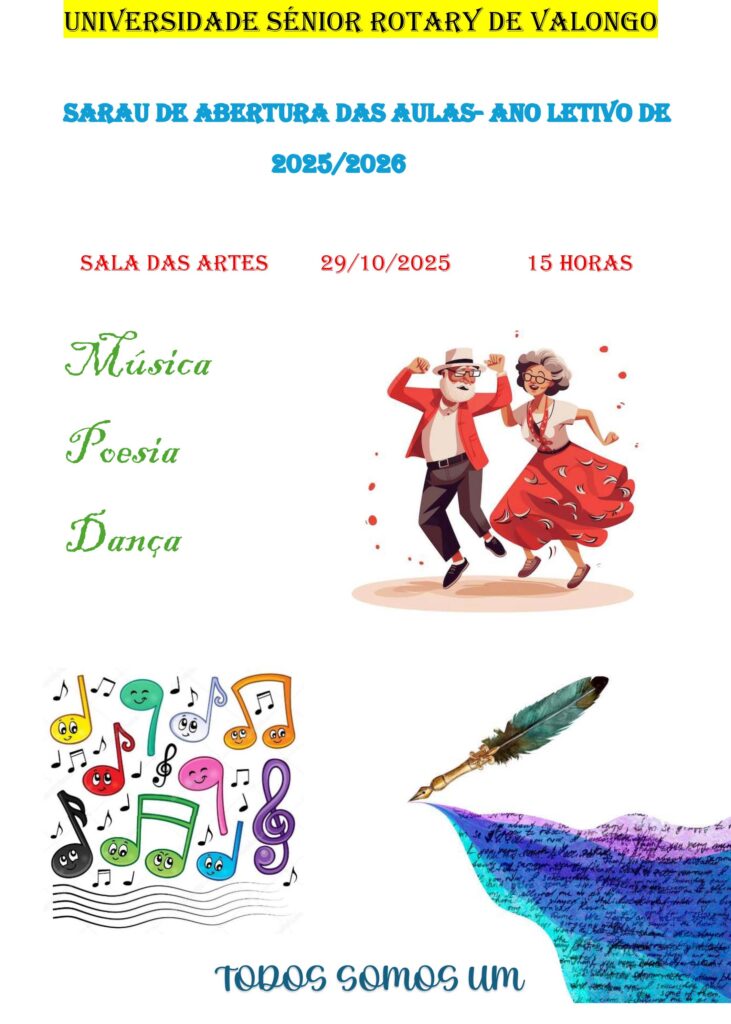 A Universidade Sénior do Rotary de Valongo vai levar a cabo o Sarau de Abertura das Aulas – Ano Letivo 2025/2026.