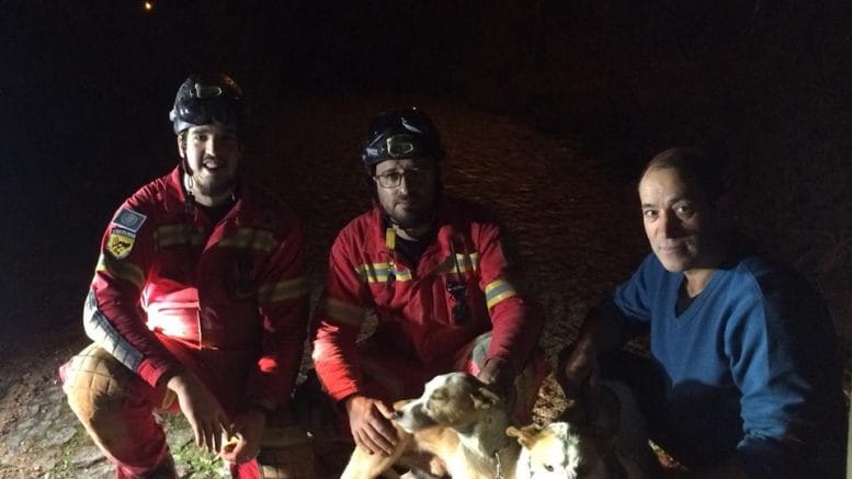 Equipa Cinotécnica dos Bombeiros de Valongo resgatam cães presos numa mina